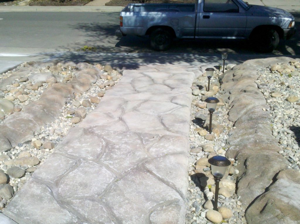 Overall I was pretty impressed with his work. For the path he did a faux stone walkway, bordered by two planter boxes.
