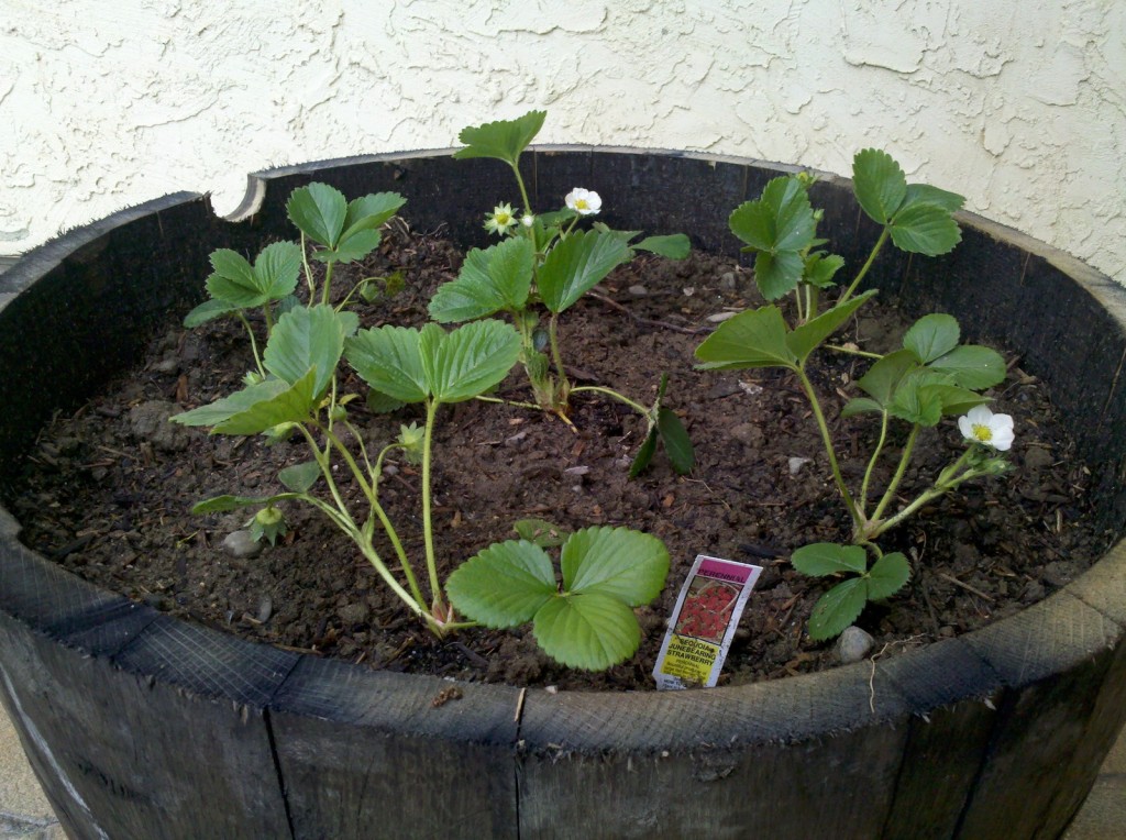 In another planter I planted some perennial strawberries. I didn’t know there was such a thing. I thought strawberries were annuals. We’ll see how they turn out.